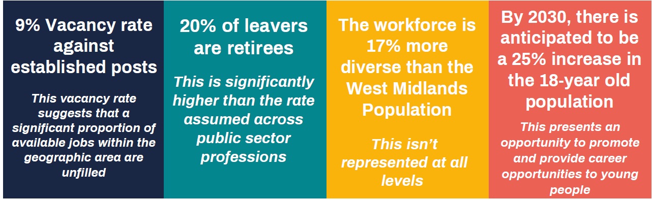 The central recommendations to some out of the report drew emphasis on the need for councils in the West Midlands to consider steps toward establishing a strategic workforce planning process, in addition to improving data quality, so that regions data is accurate and can be used to develop meaningful insights.